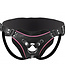 Dit mooie strap-on-harnas is gemaakt van kunstleer en afgewerkt met speelse roze randjes. Het harnas is volledig verstelbaar met gespjes op de heupen en bandjes aan de achterkant en geschikt voor een maximale heupomtrek van 109 cm. Hij is voorzien van zacht materiaal aan de binnenkant zodat hij comfortabel zit. De achterkant is volledig open zodat alles goed bereikbaar blijft. Het harnas is geschikt voor verschillende dildo's met een maximale diameter van 4.1 cm.
